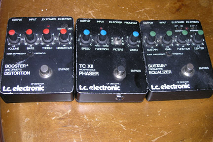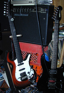 Recording/Mixing: Behringer MX9000 24/48x8 Mixing Console Hafler TA1600 Power Amp & Event 20/20 Monitors Presonus Eureka Mic Pre/Channel strip Presonus Tube Pre Lexicon MX200 effects processor Guitar Stuff: Mesa/Boogie DC-3 PRS SE Soapbar II Schecter C1 Plus Electric Guitar Ibanez Jet King -JTK1 Martin DM Acoustic Guitar Roland VG-8 (S1) Roland GR30 Guitar Synth Boss Loop Station Line6 PODxt w/Shortboard Line6 POD w/Floorboard Line6 Bass POD Line6 Delay Modeler Yamaha DG-Stomp Keyboards/Synths: Studiologic 1100SL Midi Controller Korg WavesStation EX Korg DSS-1 Sampler/Synth Korg DSM-1 Sampler/Synth (rackmount) Korg Oasys PCI Korg DW8000 Korg Legacy Collection Yamaha VL-70m Alesis Micron Other stuff: Fender Jazz Bass - 5 string Alto & Tenor Saxes Yamaha WX-11 Midi Wind Controller Various Mic's - Studio Projects C1, Rode NT-4, Oktava 219, Audix D-4, and of course 2 SM-57's Tons of boxes including: Z.Vex Fuzz Factory TC-Electronics Booster/line driver/Distortion (if you can find one buy it) Sustain/Parametric Eq (same goes for this one) SCF-Stereo Chorus/Flanger (by far THE best chorus on the planet) Programmable Phaser(smooth, yet twisted) |